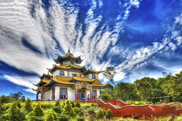 Templo Budista, Três Coroas: Você encontrará um complexo de monumentos sagrados, rodeados de mata nativa em um ambiente harmônico, colorido e com suaves sons que realçam ainda mais a paz do lugar, um convite para revigorar as energias.