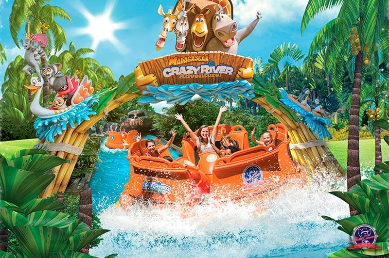 2 – Crazy River: O brinquedo está localizado na área temática do filme Madagascar e é ideal para quem gosta de água. Ele simula o rafting (prática de descer água corrente abaixo com um bote inflável) e leva os visitantes em aproximadamente 1 km de extensão de rio.