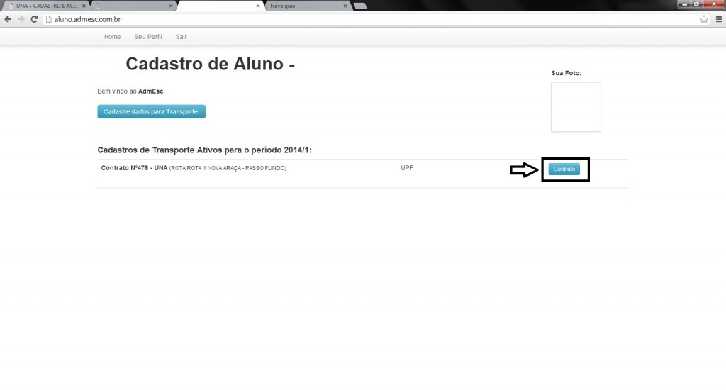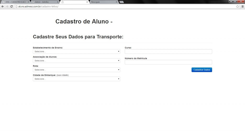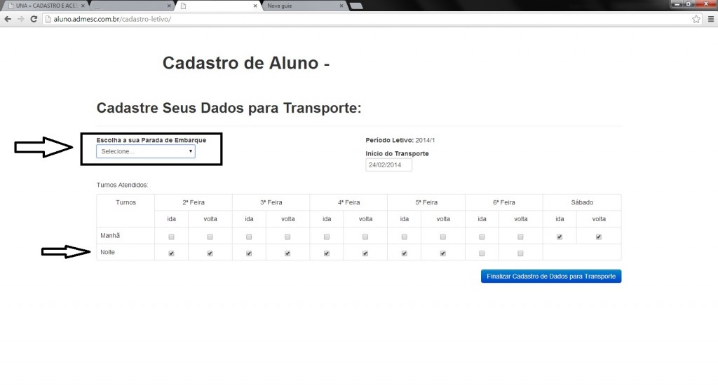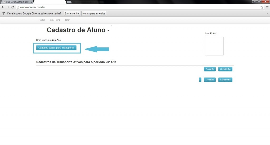 * TERCEIRA ETAPA: Clicar em CADASTRE DADOS PARA TRANSPORTE.