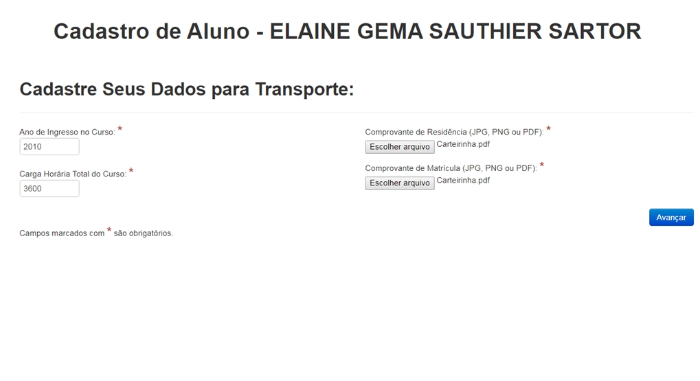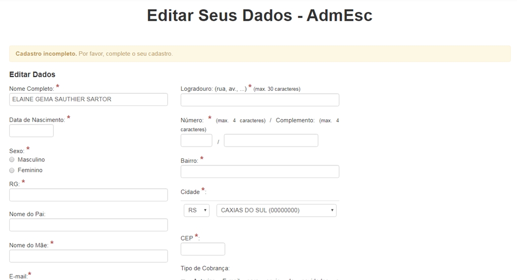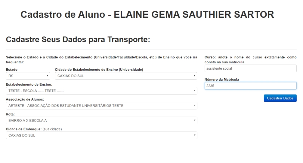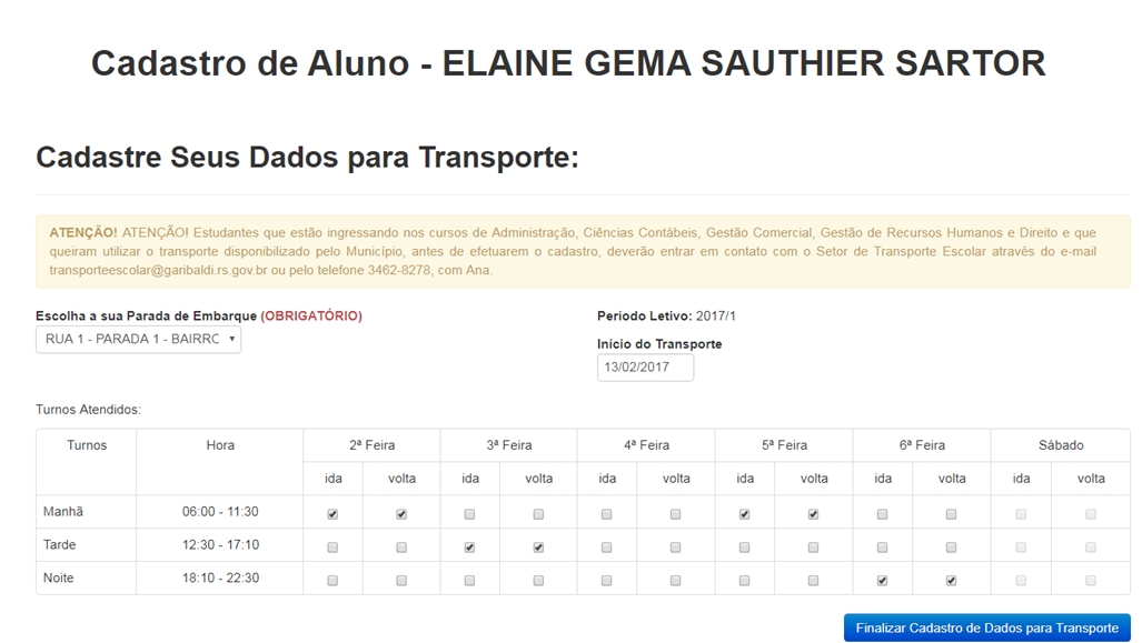 Tutorial para Cadastro de Aluno - Garibaldi.